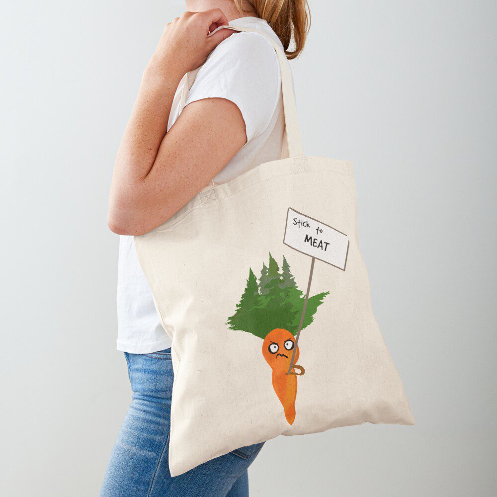 This is my CARROT PROTESTING STICK TO MEAT TOTE BAG design I create using Redbubble.