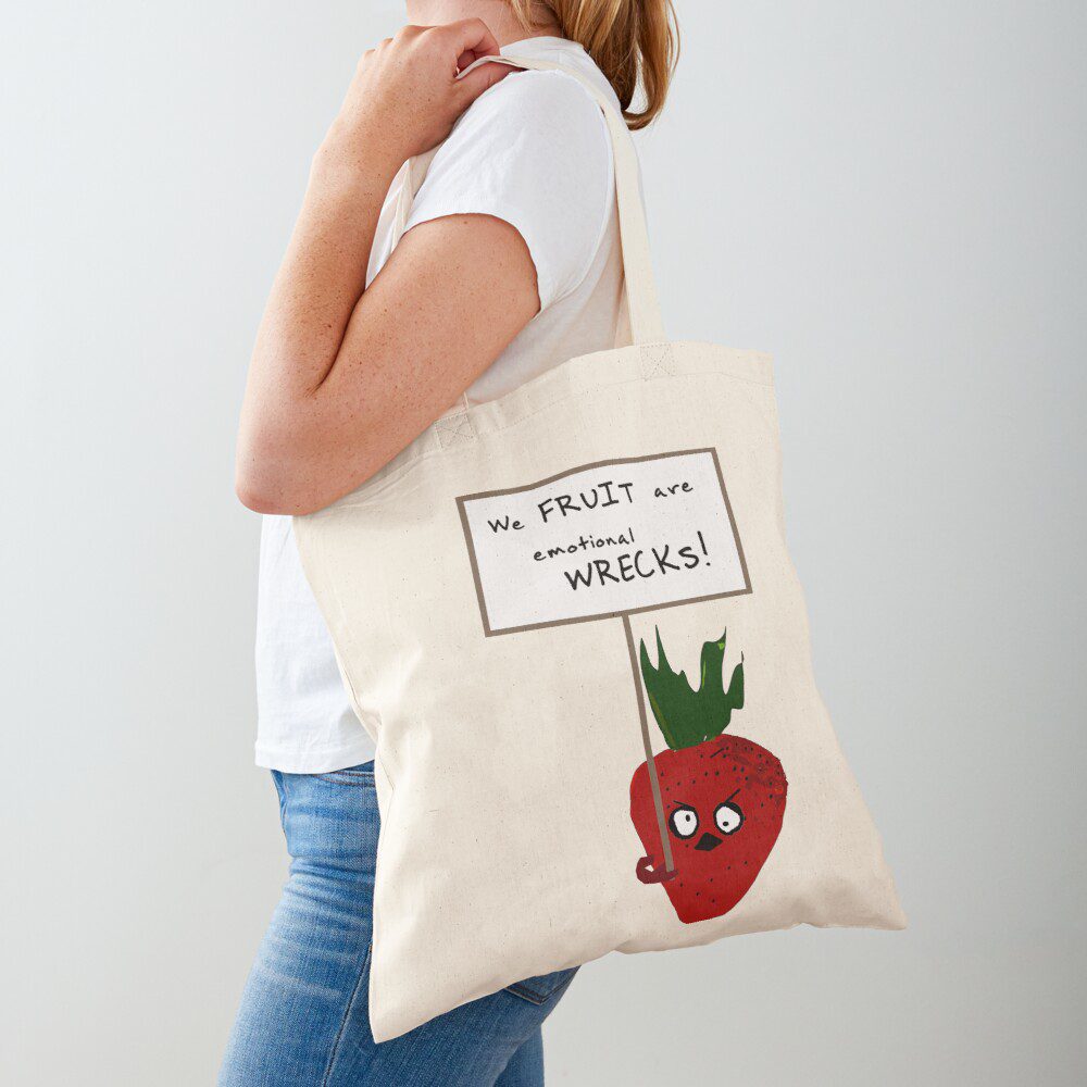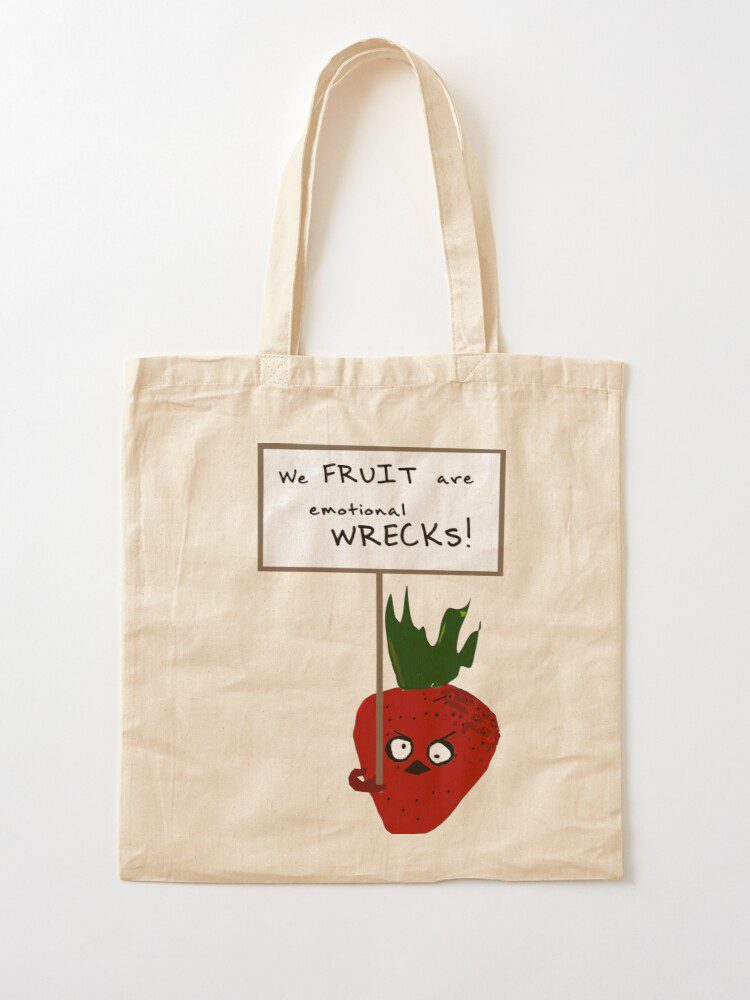 This is my STRAWBERRY PROTESTING VEGANS TOTE BAG design I create using Redbubble.